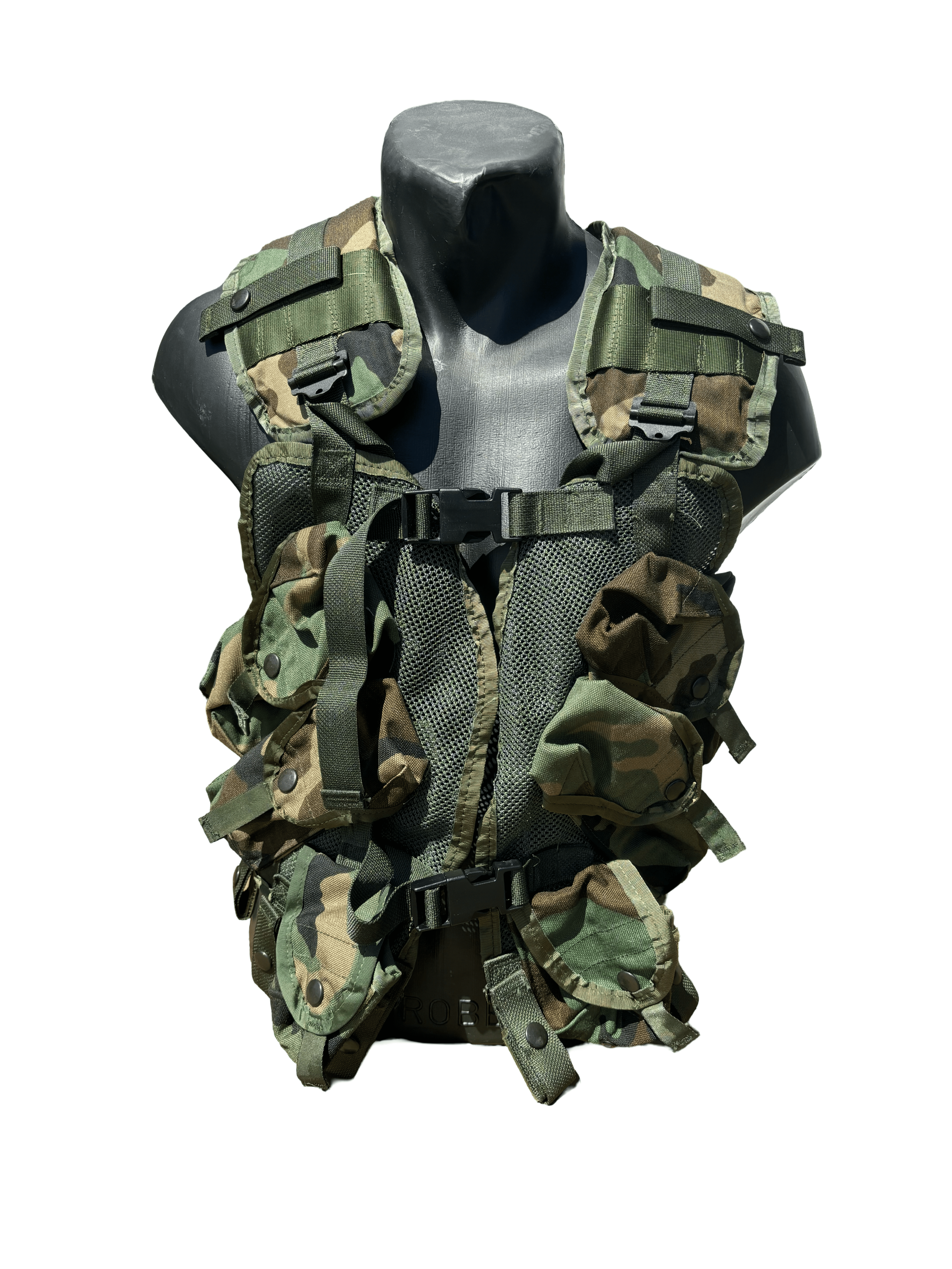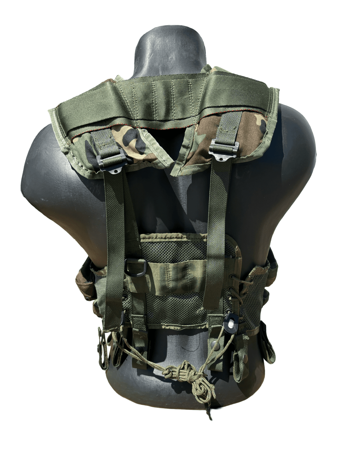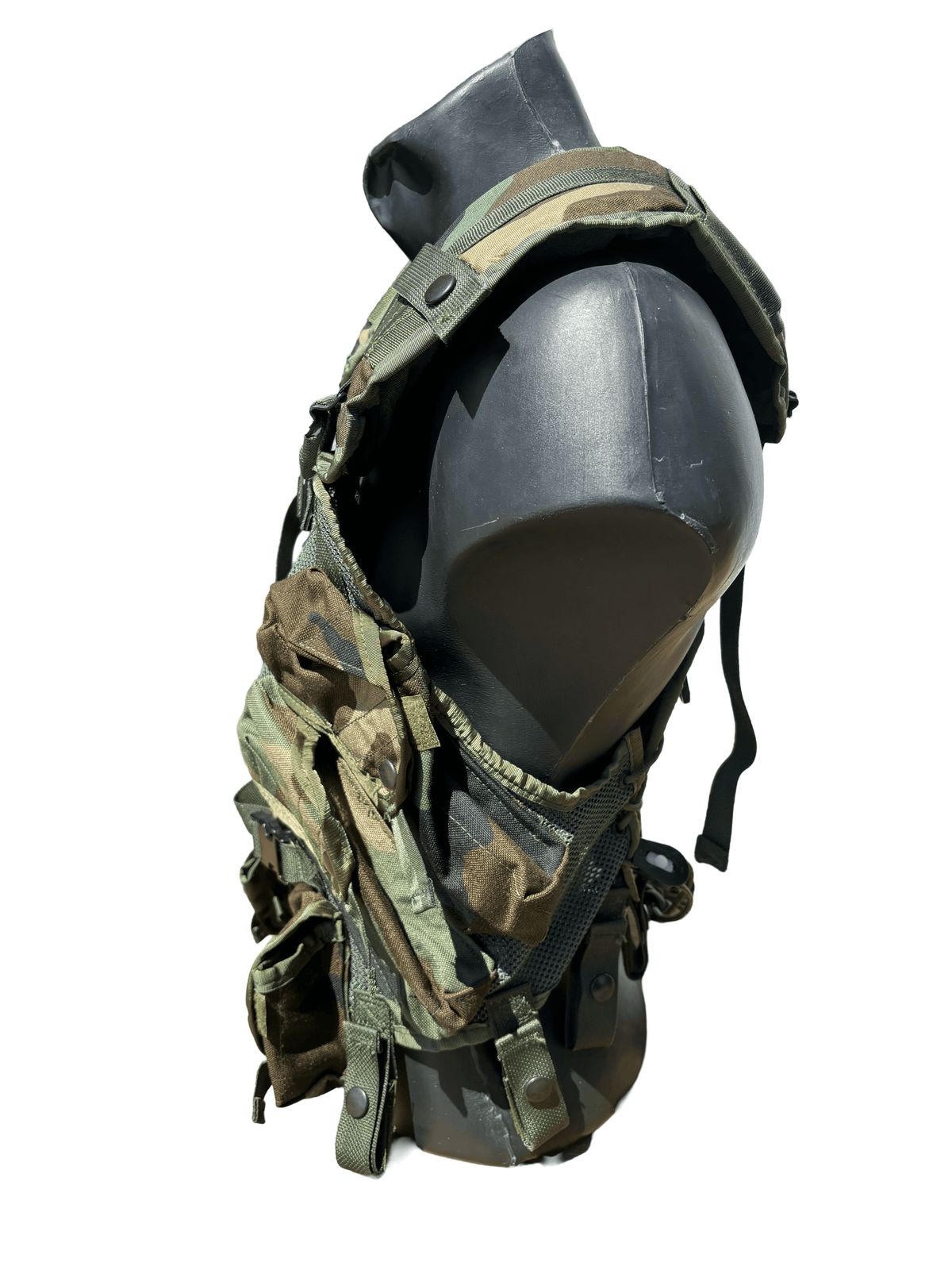 Produktbeschreibung: Das TLBV ist eine taktische Weste, die entwickelt wurde, um Soldaten bei der effizienten Aufnahme und Organisation ihrer Ausrüstung zu unterstützen. Es ist aus strapazierfähigem Material gefertigt und bietet eine robuste Plattform für das Tragen von Ausrüstungsgegenständen, ohne die Beweglichkeit des Benutzers einzuschränken. Das Woodland-Muster ermöglicht eine effektive Tarnung in bewaldeten Umgebungen.