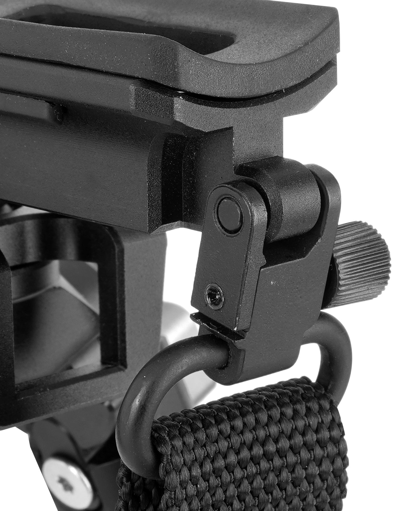 Sollte an dem Waffe eine klassische Riemen-Öse (Riemenhalterung für Gurte) angebracht sein, lässt sich das Vanguard Equalizer 2QS C Bipod dank mitgelieferter Adapter-Platte an dieser Öse anbringen - an der Adapter-Platte ist zudem eine Riemen-Öse, so dass Gurt und Bipod befestigt werden können.