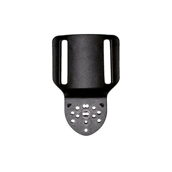Öffnungssystem an den beiden Schlaufen zum einfachen Tragen oder Entfernen des Shockloops vom Gürtel. Möglichkeit, das Öffnungssystem zu verriegeln. Drehbares System mit mehreren Positionen: vertikal, geneigt und halbfeste 90°, nützlich im Auto. Mehrere Löcher zur Einstellung von Höhe und Neigung mit Schrauben.