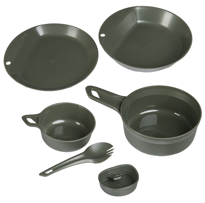 Das 6-teilige Wildo® EXP Kit ist aus hochwertigem und BPA-freiem Kunststoff, umweltverträglich hergestellt. Es besteht aus zwei Schalen, zwei Tellern, einem Spork und einer Falttasse.