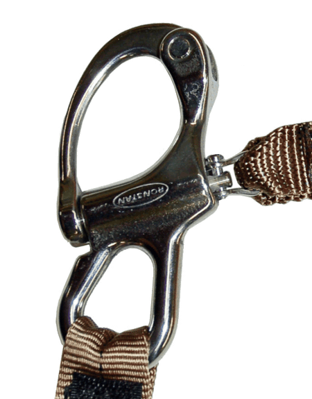 Extra schwerer Schnappschäkel mit großem Durchmesser, der ein viel einfacheres Lösen unter voller 300 lb Last ermöglicht.