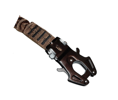 Zur Verwendung als persönliches Sicherungsseil in einem Hubschrauber. Einzigartiger Kong Frog-Schnellverschlussmechanismus an einem Ende (Stärke 22kN) zum direkten Einhaken in Hubschrauber-Bodenringe.