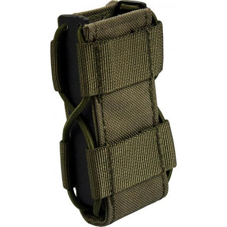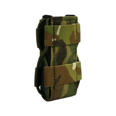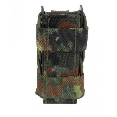 Die Hybridlösung für alle gängigen doppelreihigen Pistolenmagazine, sowie P8. Ein sicherer Halt des Magazins sowie die schnelle Zieh- und Rückführungsgeschwindigkeit werden durch ein mit Gummischnüren zusammengedrücktes Kydex® Profil erreicht. Dadurch ist dieses Produkt einzigartig auf dem deutschen Markt. Eine mit PAL´s besetzte Cordura® Front ermöglicht das Anbringen modularer Taschen. Dieses Multitalent ist daher die beste Allroundlösung für ihre Ausrüstung.
